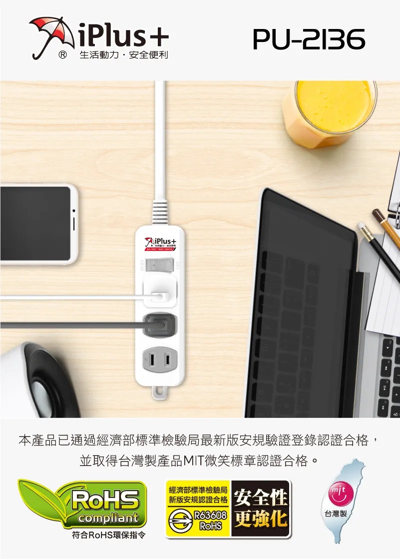 商品名稱:保護傘 PU-2136 1切3座2P延長線 .