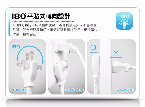iPlus+ 保護傘 PU-2136 1切3座2P延長線-1.8米(180度旋轉插頭)