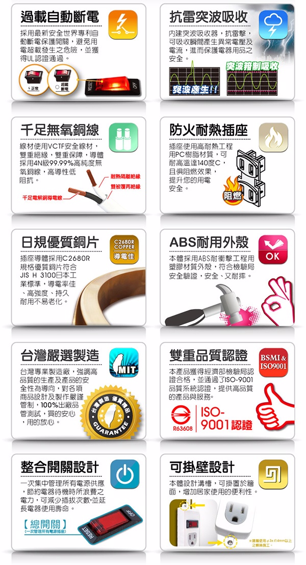 iPlus+保護傘 4切4座3P延長線9尺(2.7米) (PU-3445)