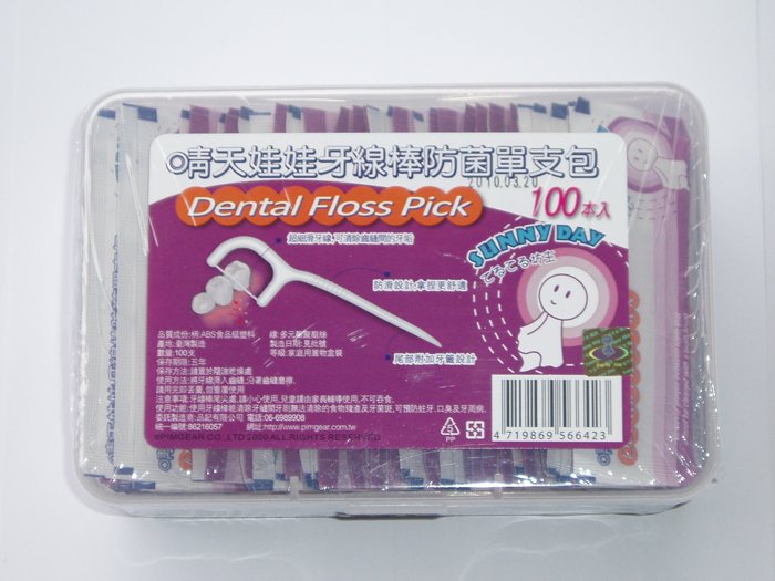 晴天娃娃防菌單支包牙線棒盒裝100支