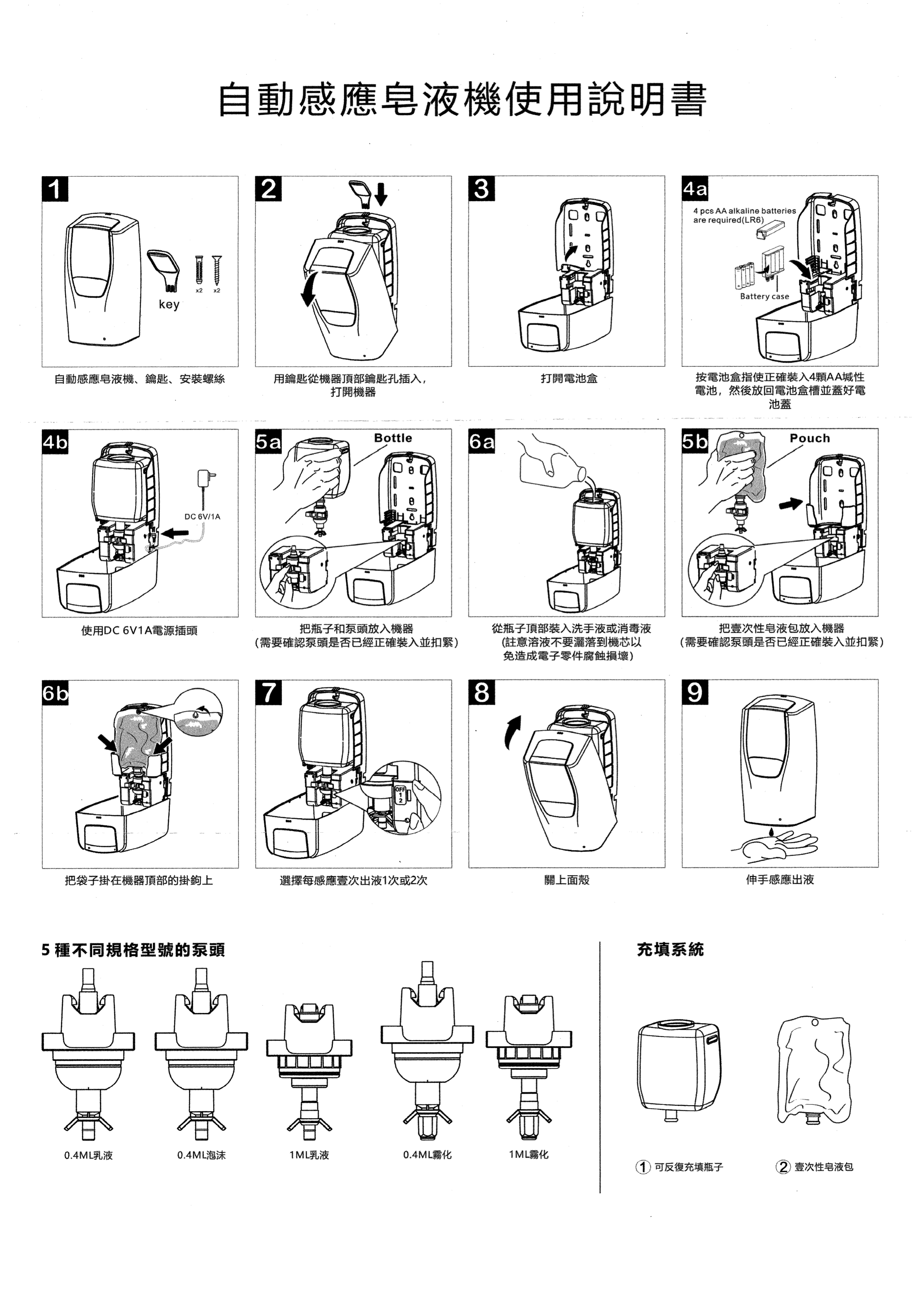 紅燈閃:提示電力不足,綠燈閃:正常出液,燈全滅:提示無供電,需要換新電池。