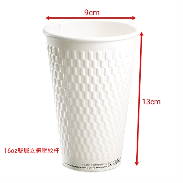 台製咖啡杯-16oz (顆粒) 雙層壓紋杯(白) 1000個/箱