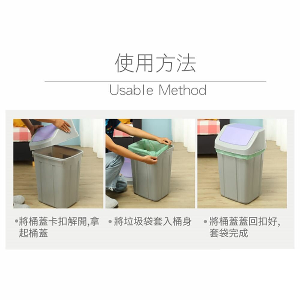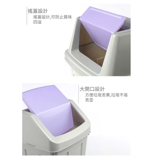 長方型亮面,光滑俐落,搖蓋式設計,可阻隔異味,卡榫設計,使桶蓋不易脫落