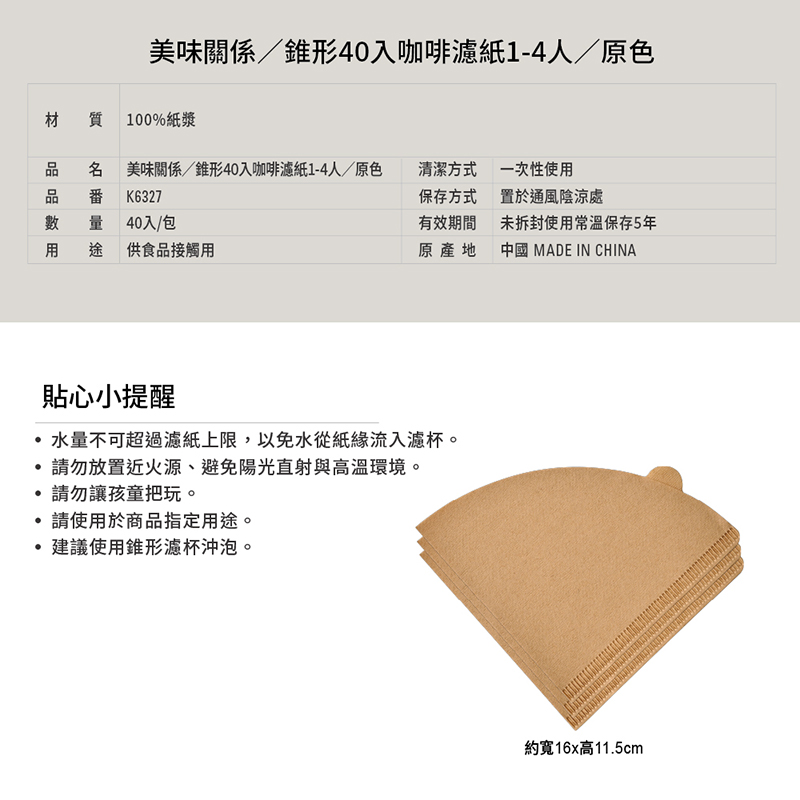 生活大師- 美味關係/ 40入咖啡濾紙1-4人 原色((錐形)