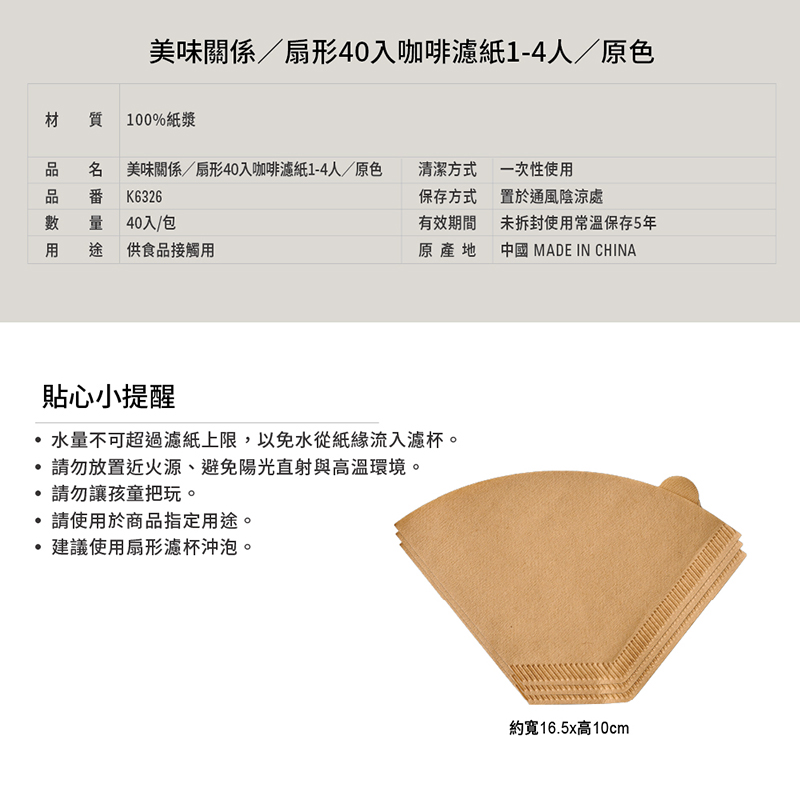 生活大師- 美味關係/ 40入咖啡濾紙1-4人 原色(扇型)