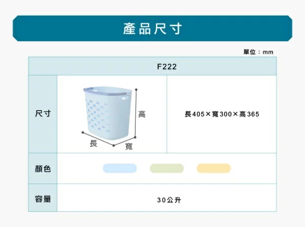 ?集中待洗衣物不散亂 ?附提把手握孔移取便利 ?通風孔設計衣物不悶熱